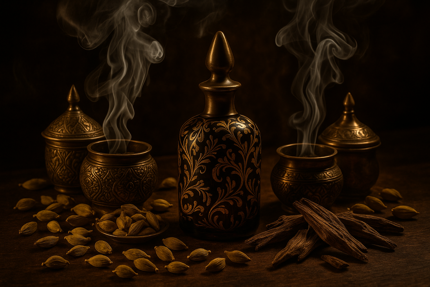 As the heart unfolds, cardamom and oud create a smoky, mysterious depth—unbreakable, unyielding. Finally,