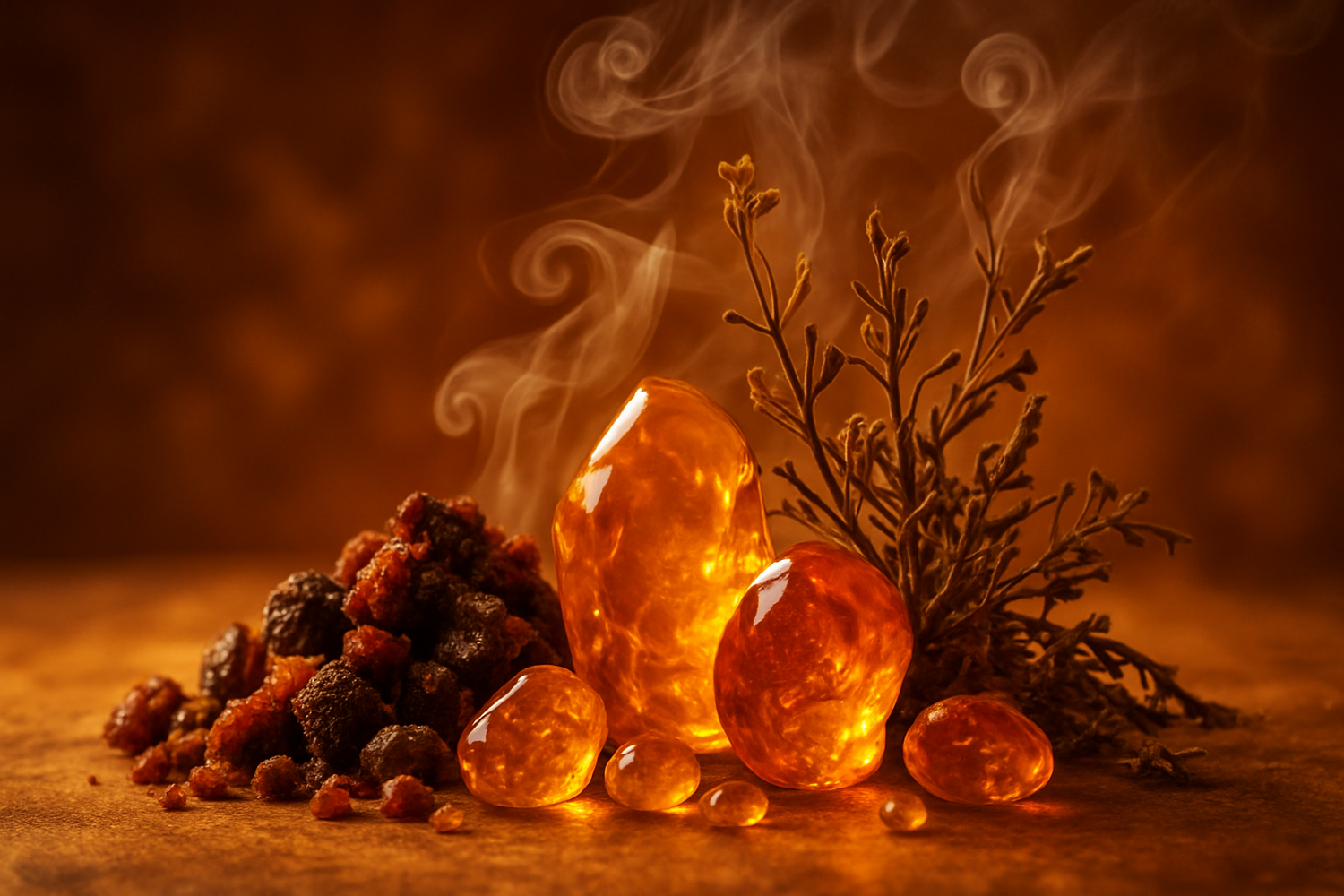 The heart reveals a rich, golden layer of amber, adding depth and sensuality.