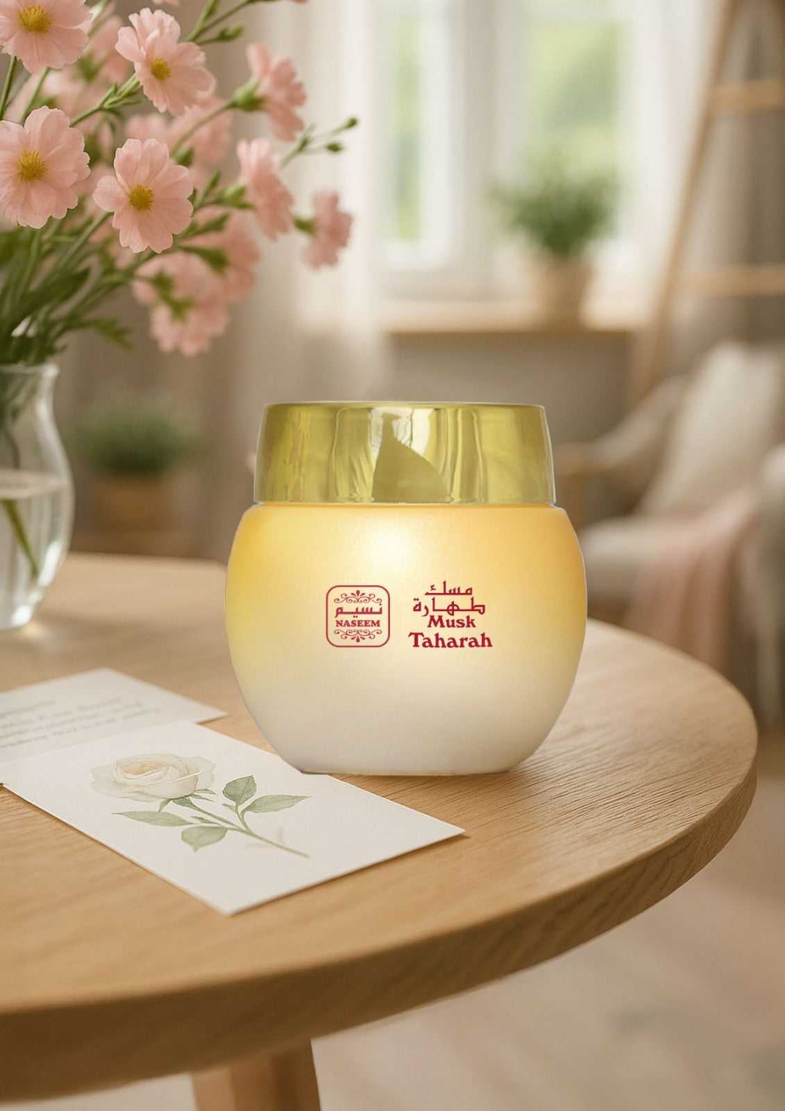 The heart features a comforting mix of powdery musk, tonka bean, and rose, adding warmth and floral sweetness