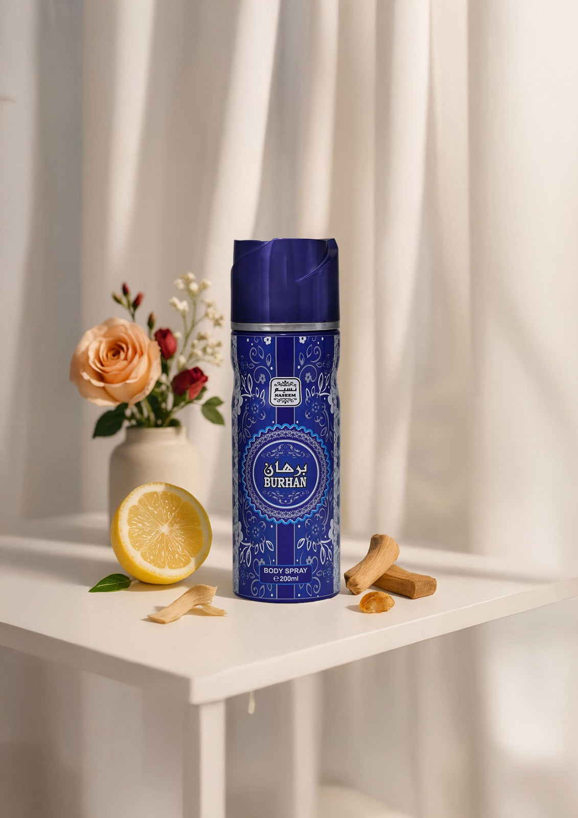 Burhan transports our senses into the colorful and hectic streets of Morocco where the vivacious and colorful small streets filled with overpowering spicy notes encounter the fresh aquatic notes from the courtyard fountains of the local houses.