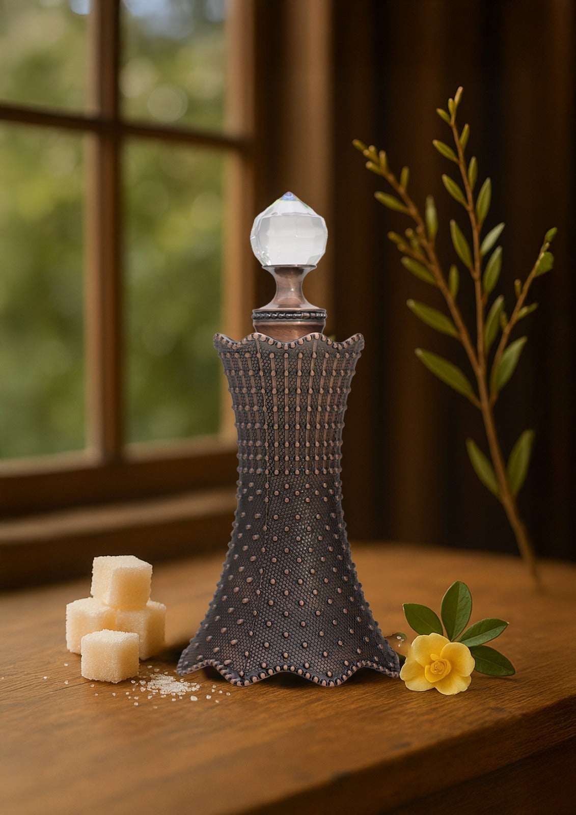 Sara Attar is a captivating woody-ambary-musky fragrance that opens with sweet sugar and the unique, slightly floral note of targeted, offering a bright and intriguing start. The heart is a delicate blend of amber, floral, and transparent notes, adding a soft, airy richness. The fragrance then settles into a deep, earthy base of moss and musk, creating a warm, sophisticated finish that lingers with a smooth, sensual allure.