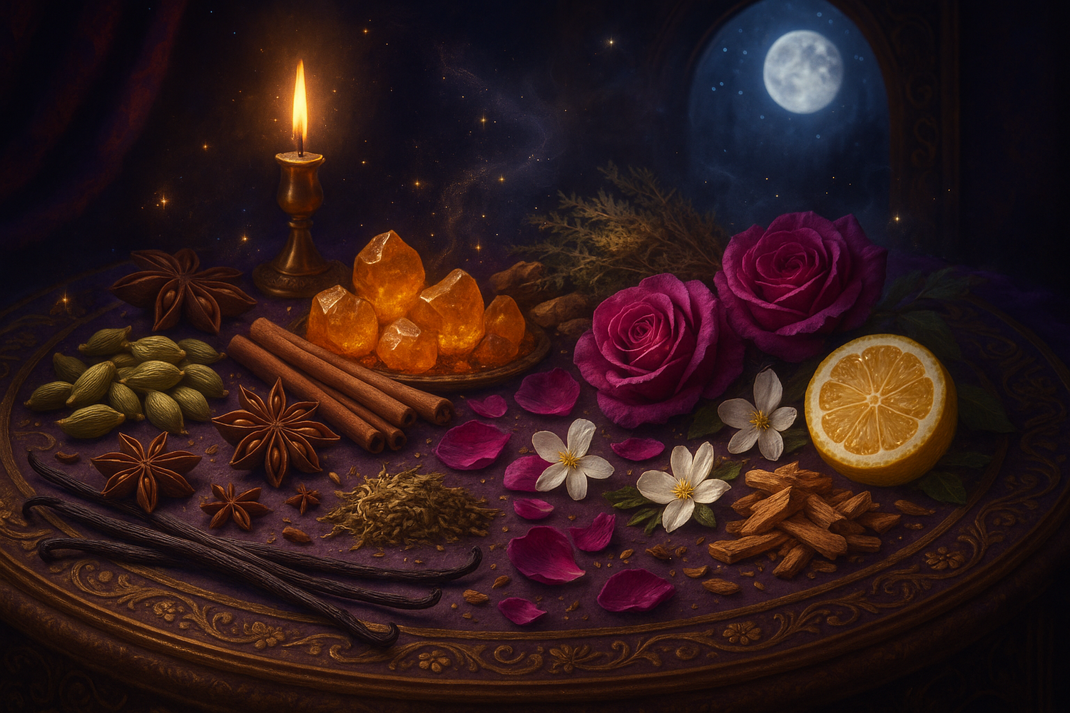 The heart is a delicate blend of amber, floral, and transparent notes, adding a soft, airy richness.