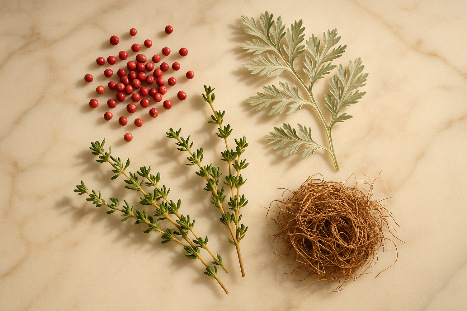 The fragrance unfolds with captivating midnotes, where pink pepper, artemisia, thyme, and vetiver weave an intricate olfactory tapestry.