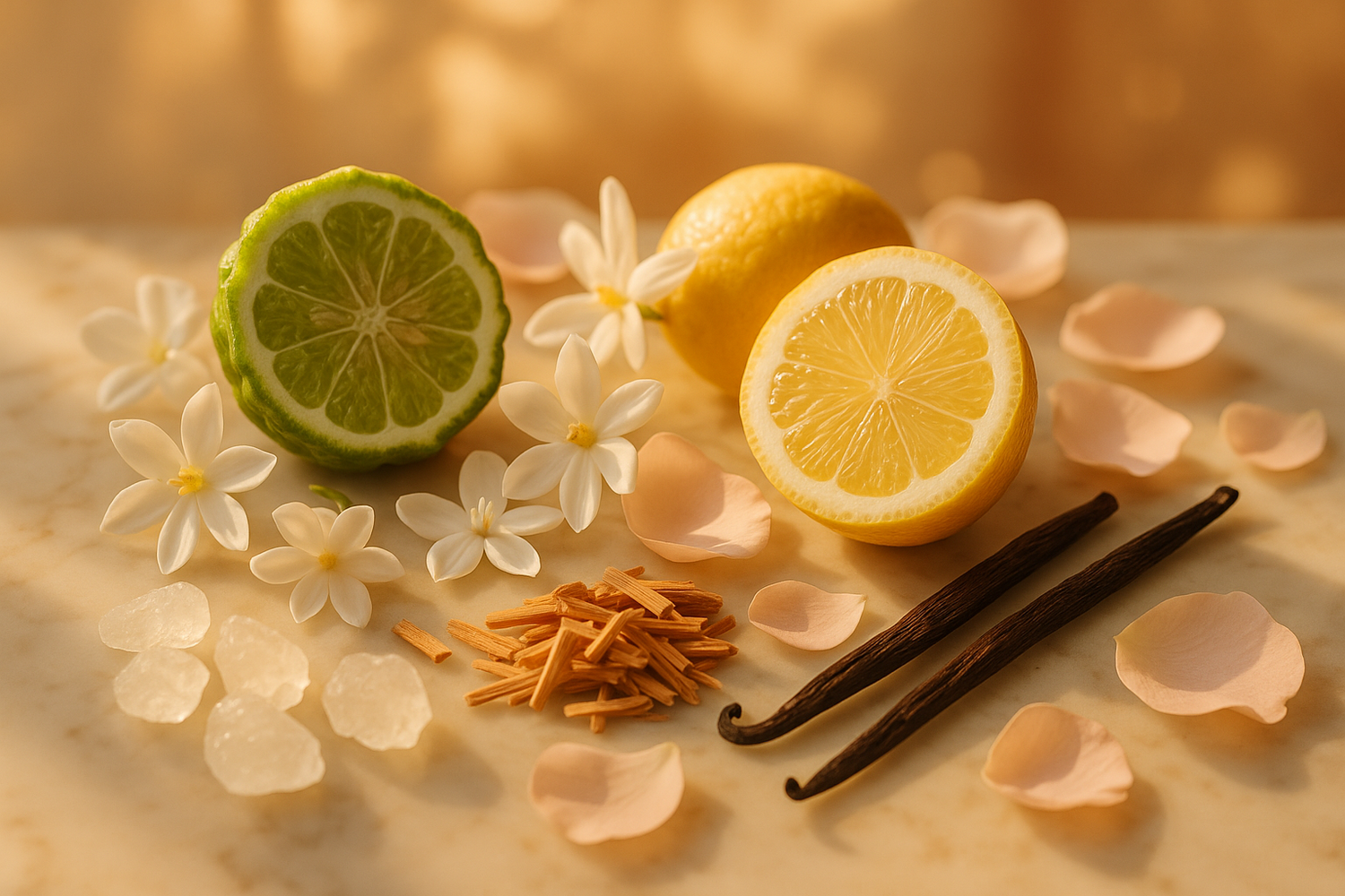 The base settles into a warm, comforting finish with soft musk, creamy vanilla, and smooth sandalwood, adding depth and sensuality. A refreshing yet warm scent, perfect for those who enjoy a balanced combination of citrus, florals, and soft, comforting woods.