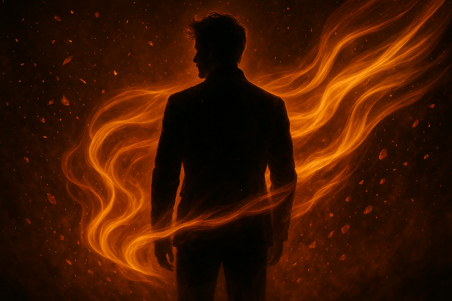 A lone figure walks forward, the air around him crackling with the spice of black pepper and saffron, a scent as bold as the path he treads.